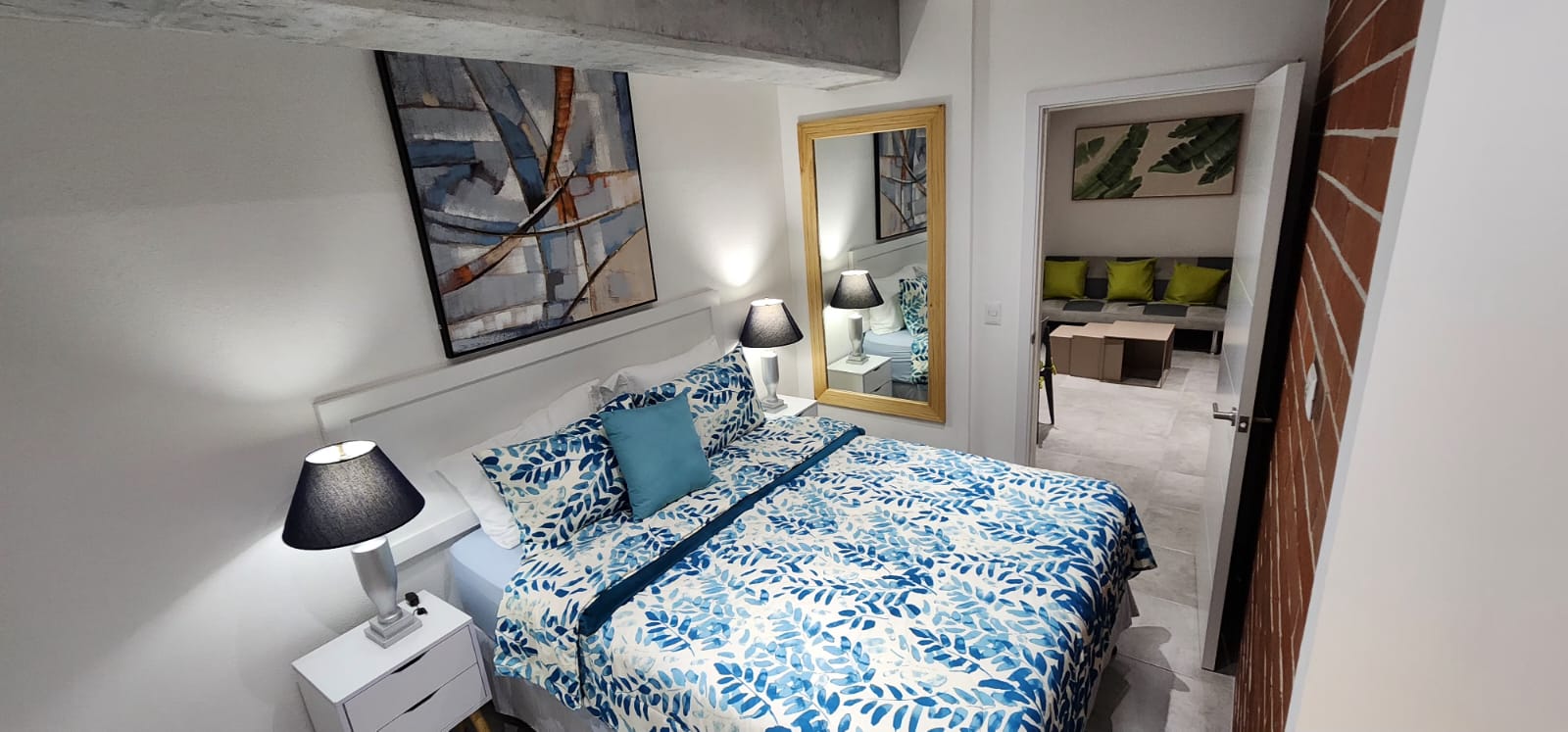 Apartamento 1002 nivel 10 con 1 dormitorio, 100% amueblado: cama, mesitas de noche, lámparas, TV, mesa pequeña con sillas, sillón/cama en sala, enseres de cocina y electrodomésticos, incluye cuota mantenimiento e Internet.