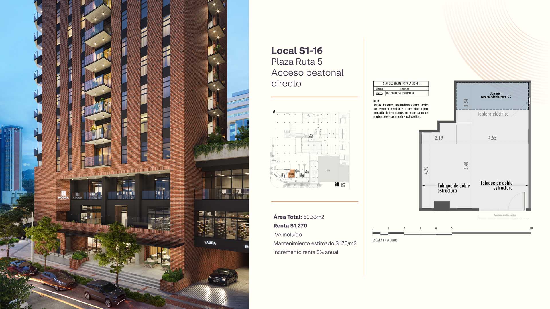 Local en Plaza Ruta 5, acceso peatonal directo, zona 4, visibilidad y conectividad óptima. Acceso dual a sótanos.